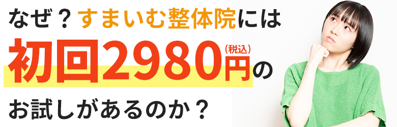 インターネットで産後の骨盤矯正で検索していて初回が安いから一回くらいはと考えてすまいむ整体院に来てみました。