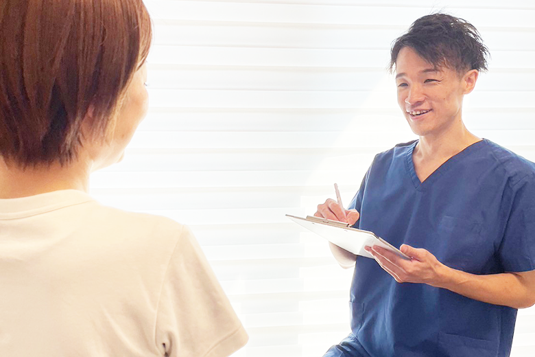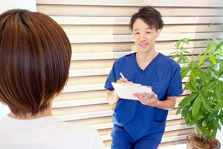 その後、お悩みの症状について「どこが、どのように、そしていつ頃から痛むのか」という点で詳しくお聞きしていきます。